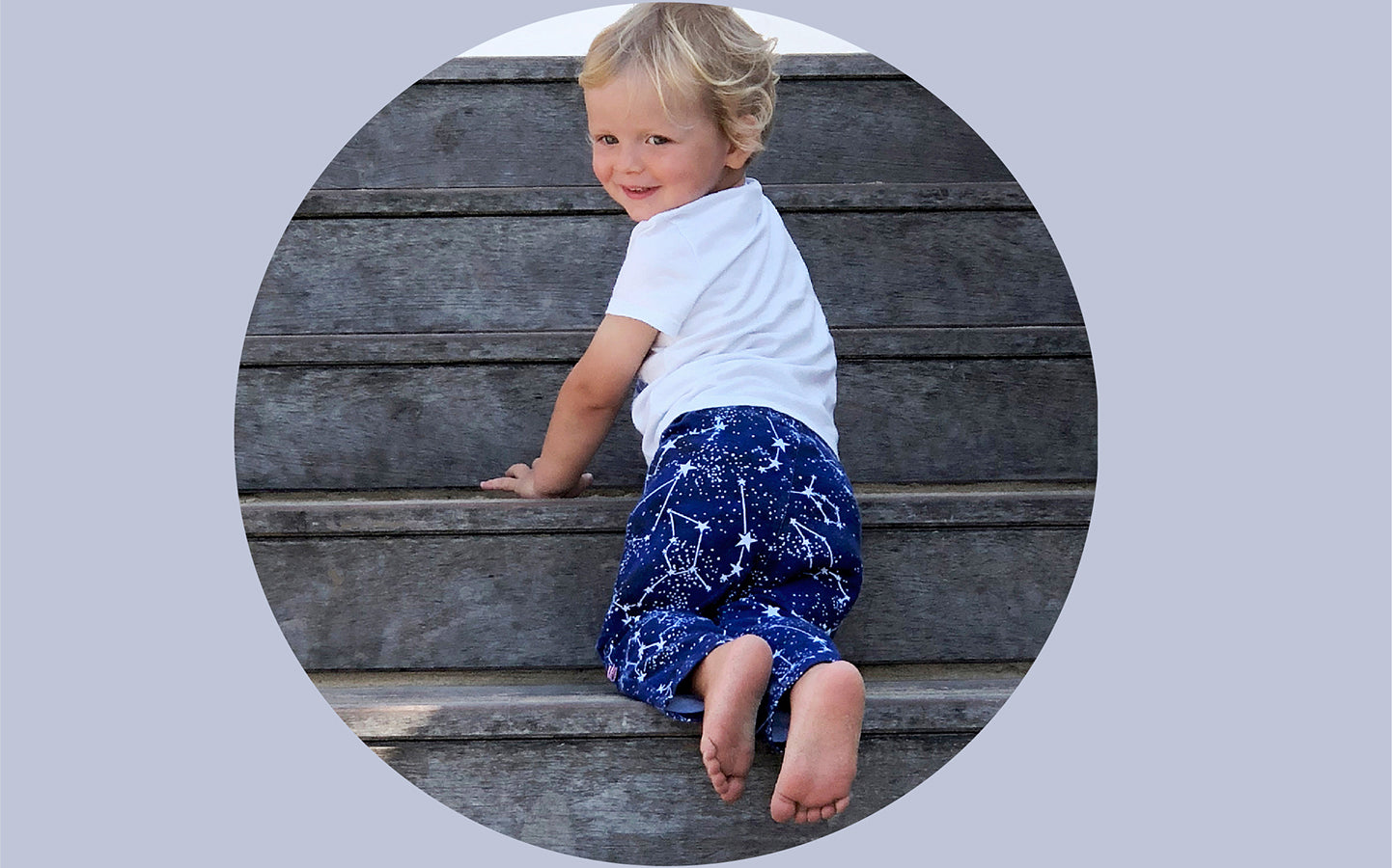 Our founder, Sandra Aris, was inspired by the people around her, by all the parents wanting the best for their little ones. Our protective toddler pants have pads on the knees and on the butt to make every fall a little easier.